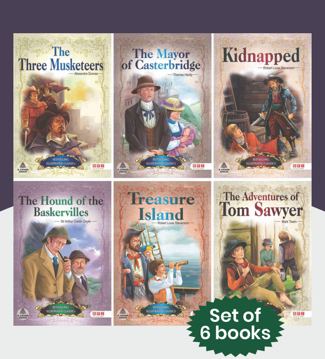Introduce your child to the world’s greatest adventure classics with this beautifully illustrated Set of 6 Books, specially created for young readers. Each book brings iconic characters, thrilling journeys, and unforgettable life lessons to life through engaging language and vibrant artwork. This curated set introduces children to world famous literature in an enjoyable and accessible way. It helps build vocabulary, improves imagination, and fosters a lifelong love for reading. Whether your child loves mystery, adventure, historical drama, or humorous tales this pack has something for everyone.