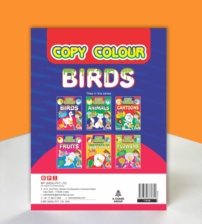 Featuring simple and attractive bird illustrations, the book encourages children to colour neatly while improving hand-eye coordination, concentration, and fine motor skills. The copy-colour approach builds confidence and makes early colouring practice more structured and enjoyable.