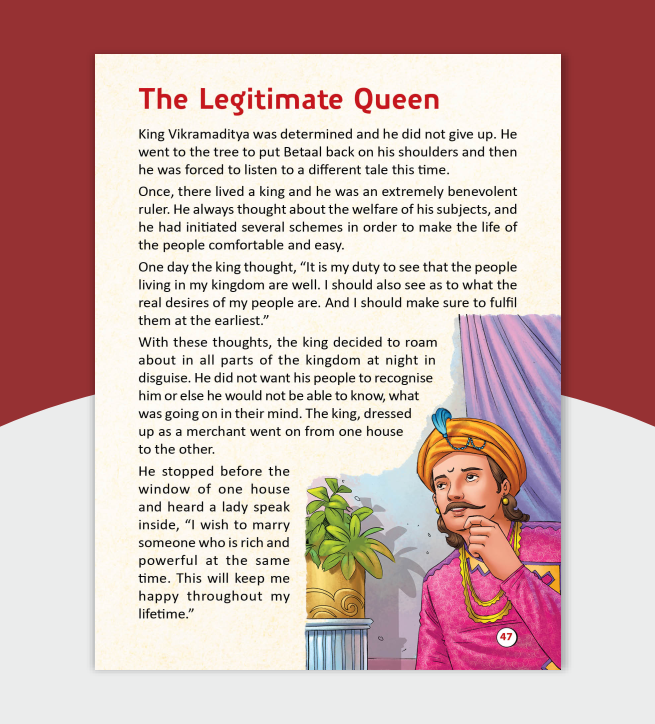 Tales of Tenali Raman features clever and humorous stories that highlight intelligence, presence of mind, and problem-solving skills. Stories of Vikram Betaal presents intriguing and thought-provoking tales that encourage logical thinking and moral understanding through exciting narratives.