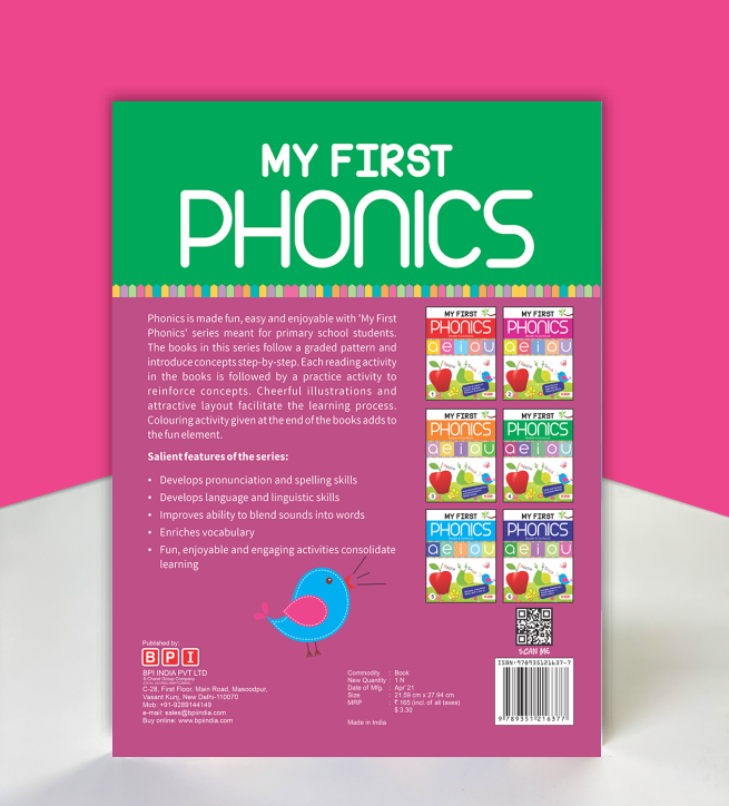 First Phonics Book helps children master advanced phonics concepts through engaging lessons and practice. My First Phonics Reader & Workbook 4 is designed as a complete First phonics reader for kids, building on earlier levels to strengthen reading fluency, vocabulary, and comprehension. This phonics workbook for kids is filled with interactive exercises, fun activities, and colorful illustrations that make learning phonics enjoyable and effective.