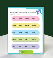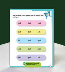 • Phonics workbook for kids covering word families, tricky spellings, and advanced blends.