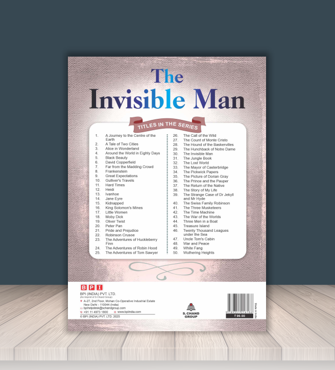 The novel follows a scientist who discovers the secret of invisibility, leading to unexpected consequences and thrilling events. Through fast-paced storytelling, the book introduces young readers to themes of science, responsibility, ethics, and human behaviour, while helping them develop strong English reading and comprehension skills.
